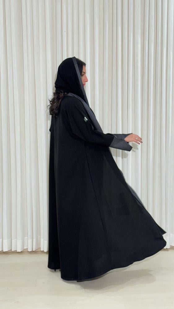 تتميز عباية "الأناقة" بتدخيلات من التفتة الهندي الفاخر على الأكمام والصدر، مما يضفي عليها لمسة ملكية وبريقاً لا يُنسى. فتحة الكم الأنيقة تزيد من جمال التصميم وتمنحكِ حرية الحركة. أما القصة النصف كلوش، فتضفي على مظهركِ أنوثة وجاذبية عصرية.