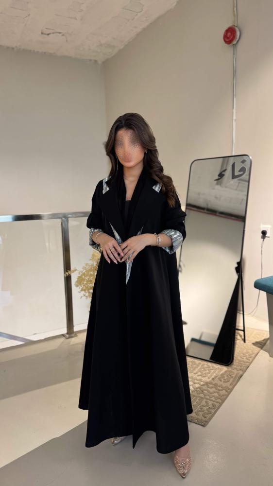 عبايه قماش كتان تدخيلات جاكار معرق ازرق ORa 135