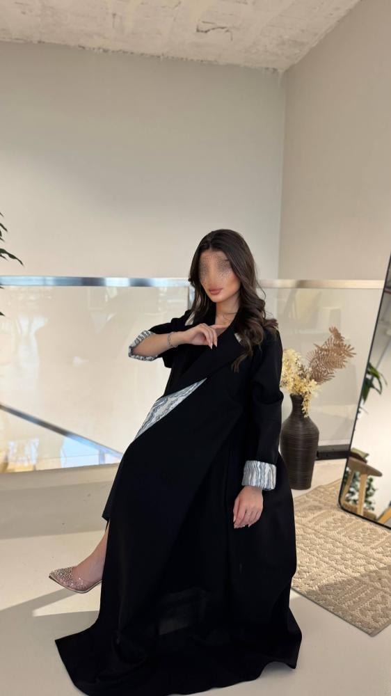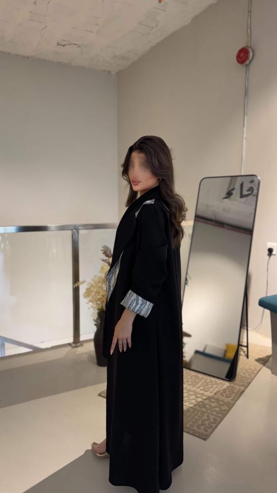 عبايه قماش كتان تدخيلات جاكار معرق ازرق  ORa 135