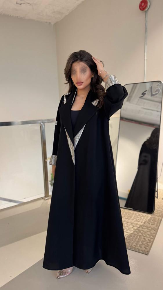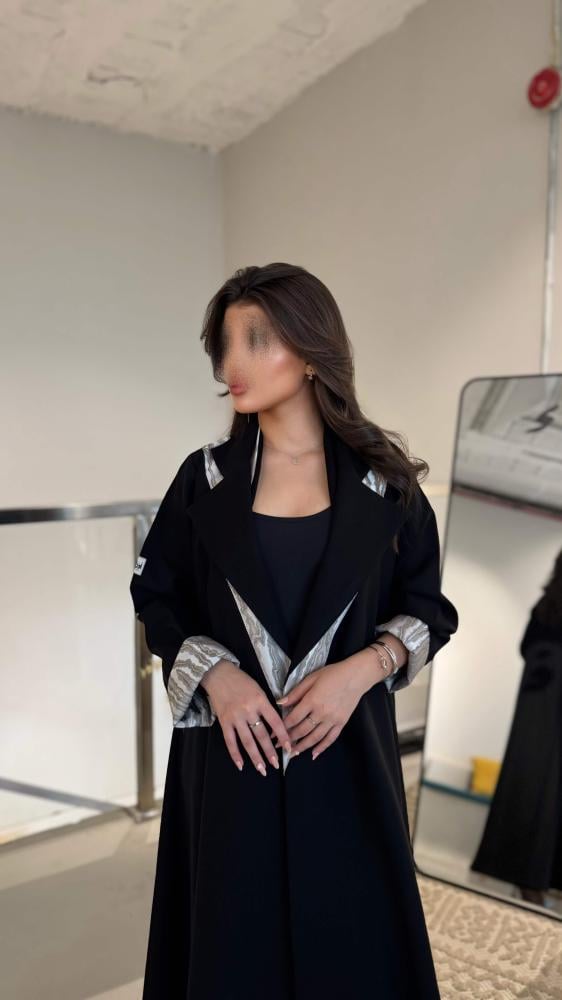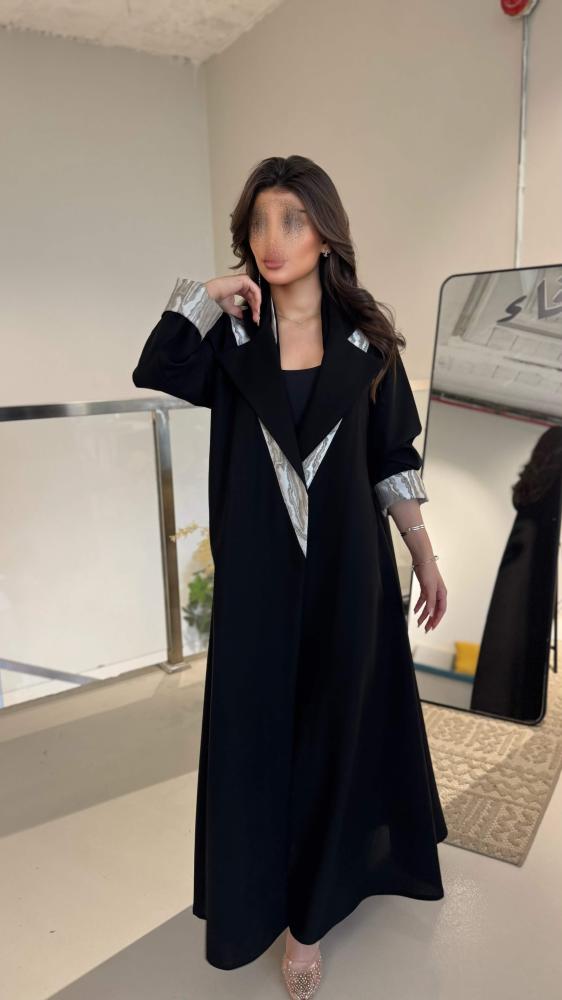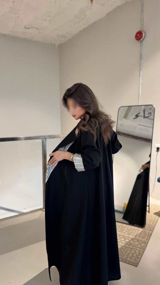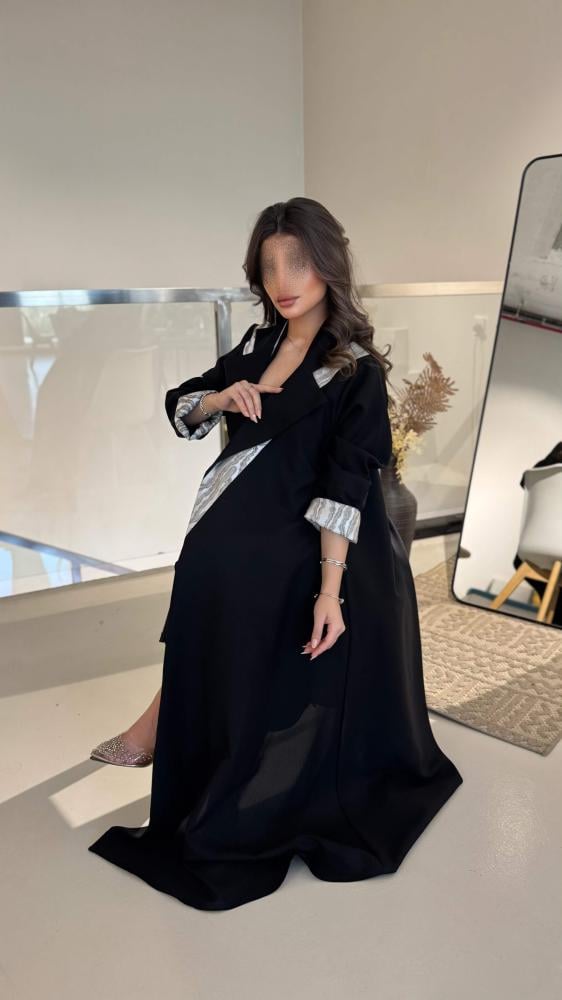 عبايه قماش كتان تدخيلات جاكار معرق بيج ORa 138