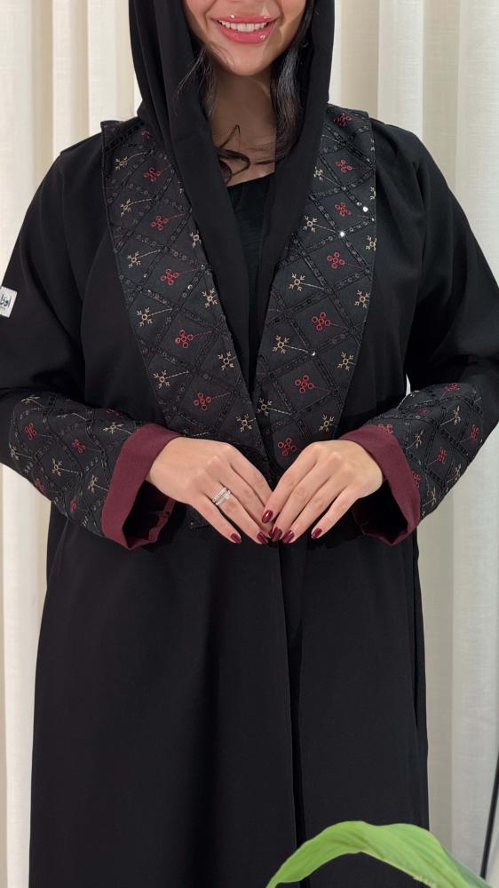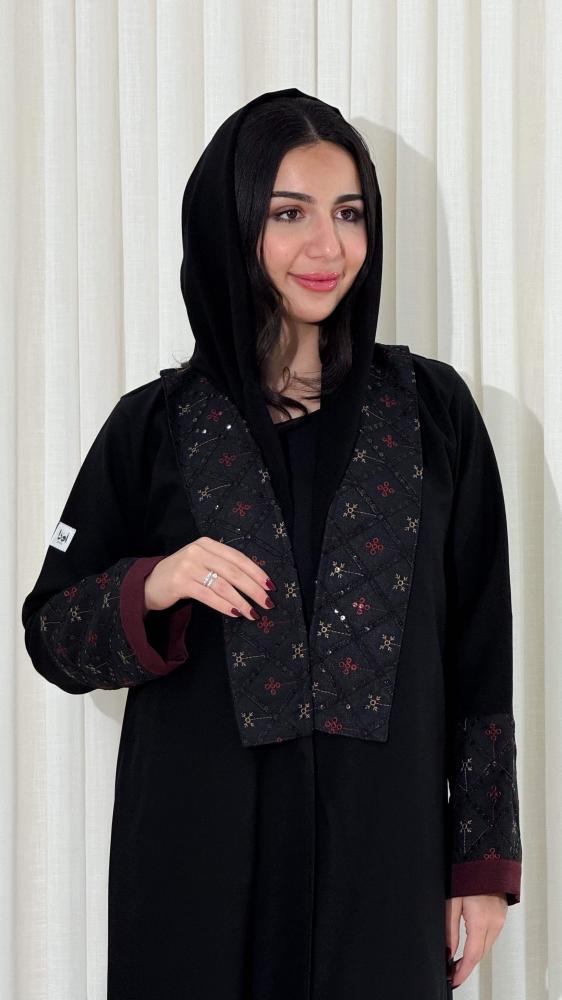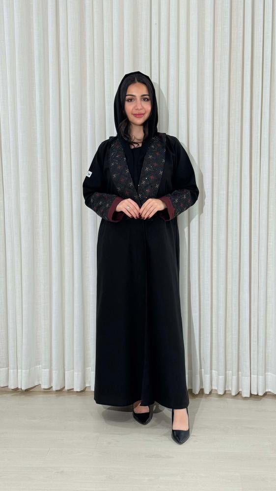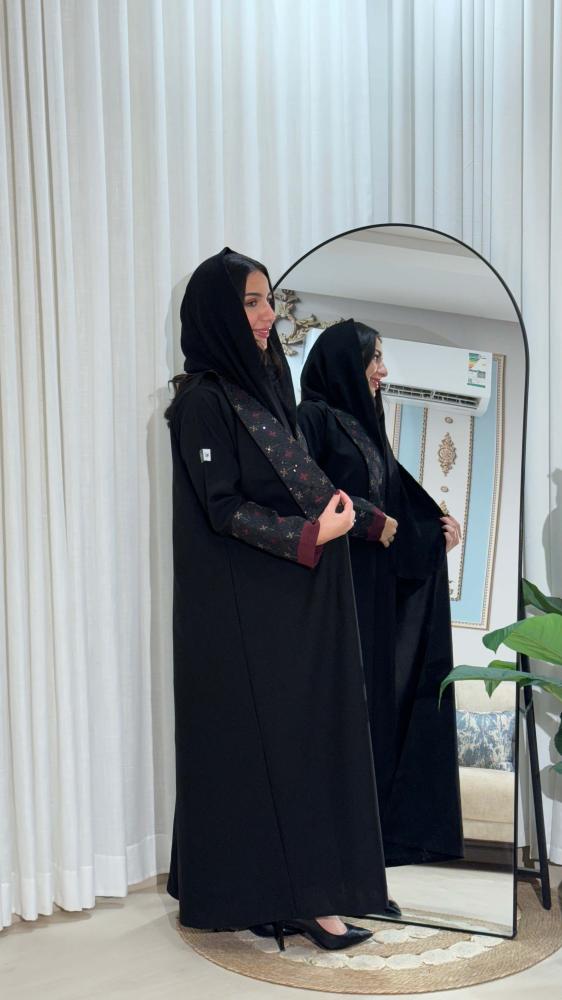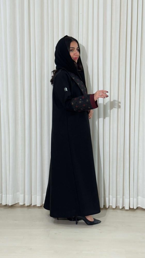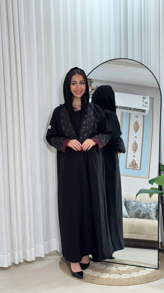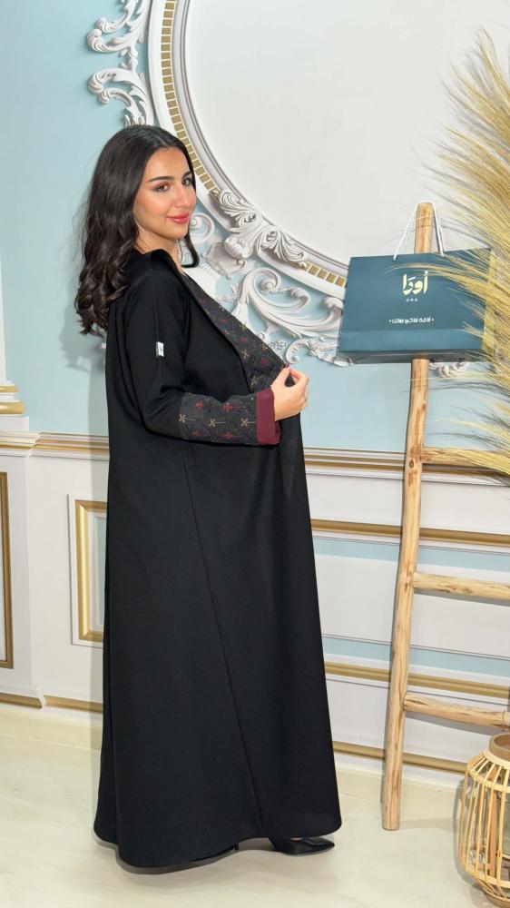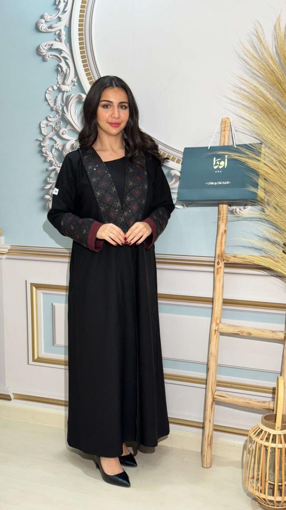 تتميز العباية بتدخيلات جذابة من التطريز الدقيق والشك اللامع، مما يضفي عليها لمسة من الفخامة والتميز. هذه التفاصيل الأنيقة تبرز جمال التصميم وتجعلكِ محط الأنظار في أي مناسبة. كما تتضمن العباية تدخيلات من الكتان الملون التي تضفي لمسة عصرية وحيوية على التصميم الكلاسيكي.